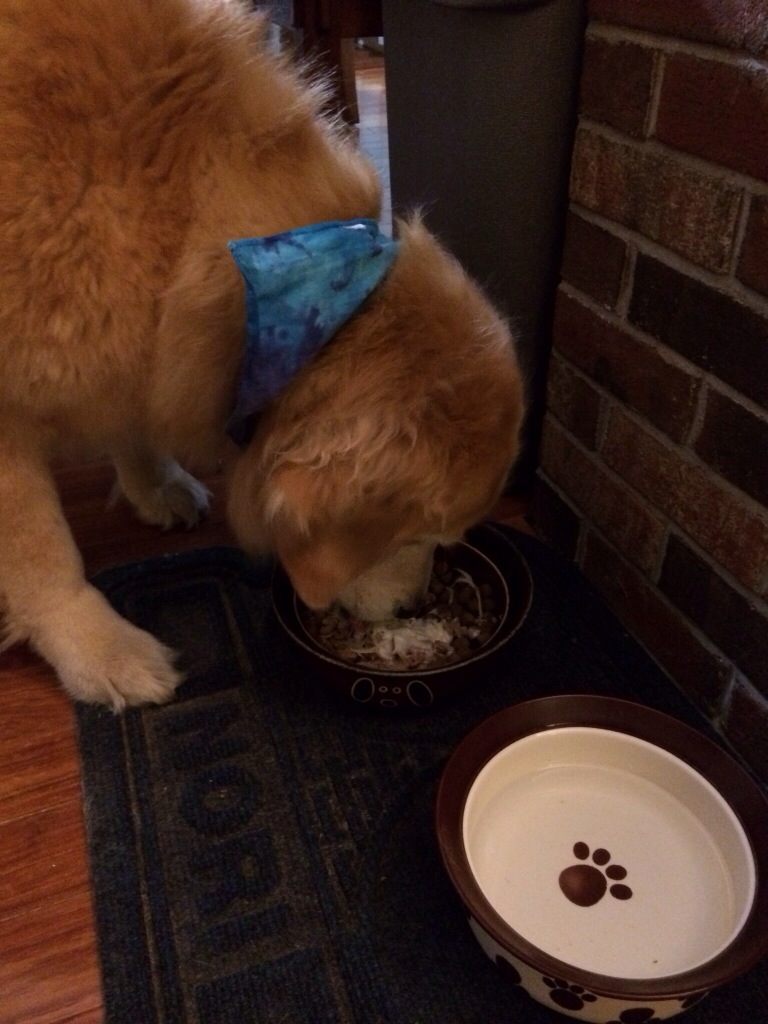 My beautiful Golden Retriever Soolin turned 9 years old yesterday. Last night we engaged in what has become a tradition for her birthday, starting with a gift (this year – a big squeaky crocodile, chosen by Brady), followed by the happy birthday song, and then a feast of some of her favorite things: kibble, cheese, yoghurt, and ground meat.