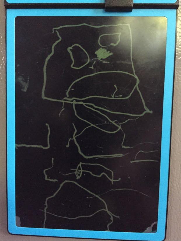 My son’s first comprehensible picture June 5, 2015 look carefully and you can see what he was going for here. This is the first time I have really seen this in his art: Share this: Click to share on X (Opens in new window) X Click to share on Facebook (Opens in new window) Facebook Click to share on Reddit (Opens in new window) Reddit Like Loading... Related
