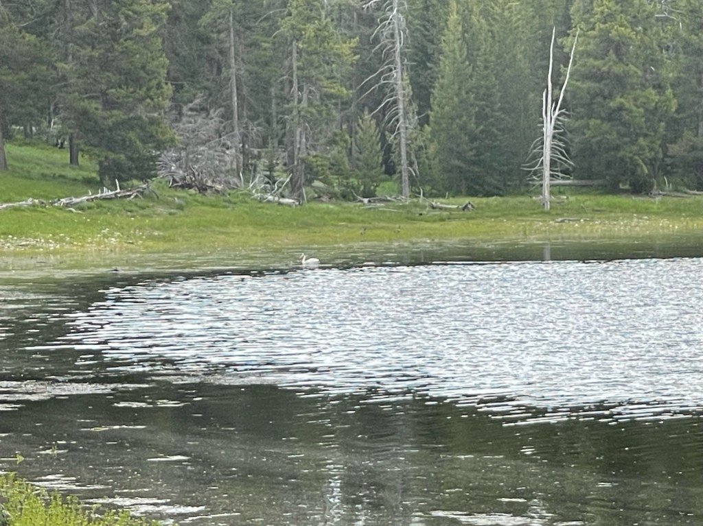 We attempted a short hike to Swan Lake and Heron Pond only to be foiled by some closed trails due to heightened bear activity. We still made it the back way to Heron Pond and saw a giant flock of Canada geese, GBH, an osprey diving for fish (a near miss) and an American white pelican which has recently begun visiting the park.