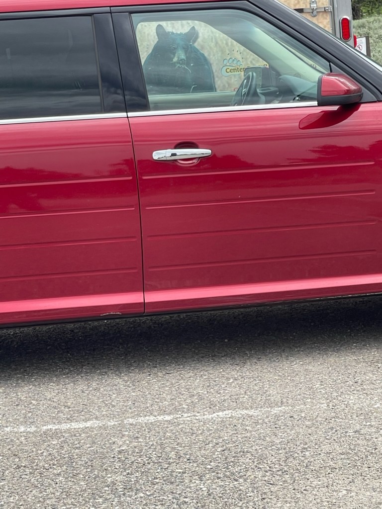 After lunch we drove to some lookouts to view wildlife and found a bear driving a car!