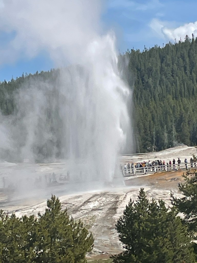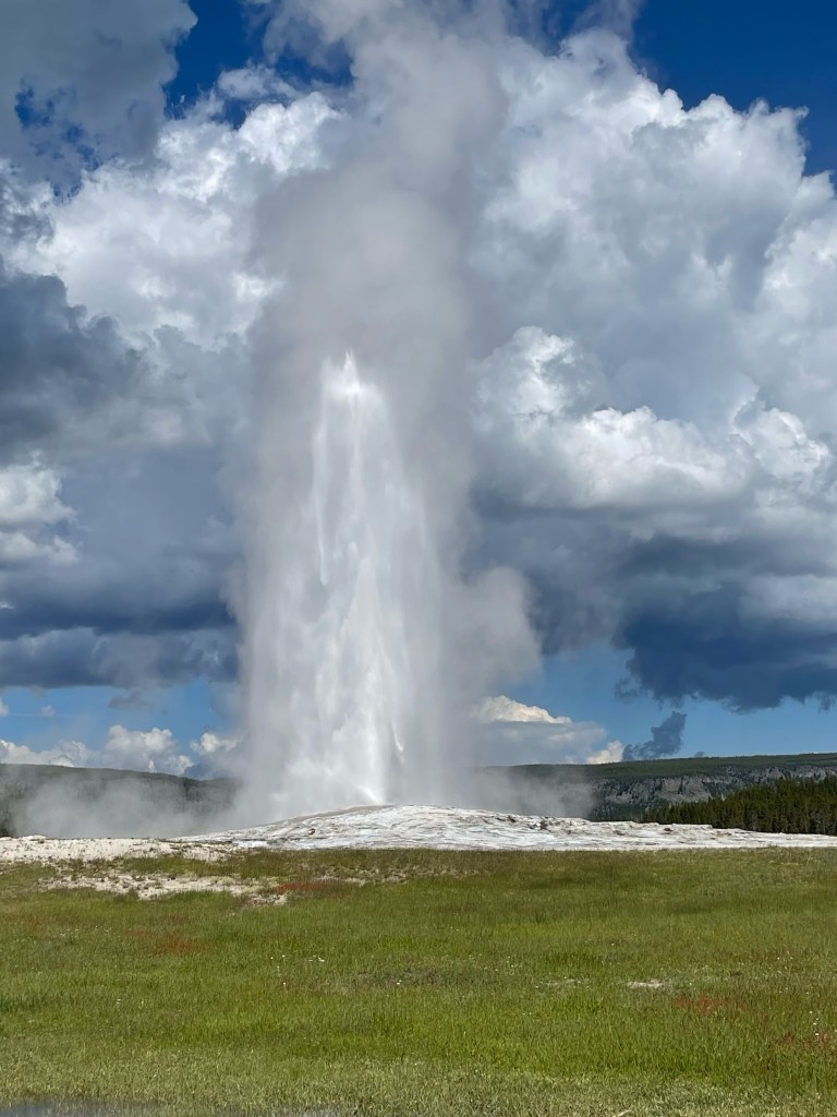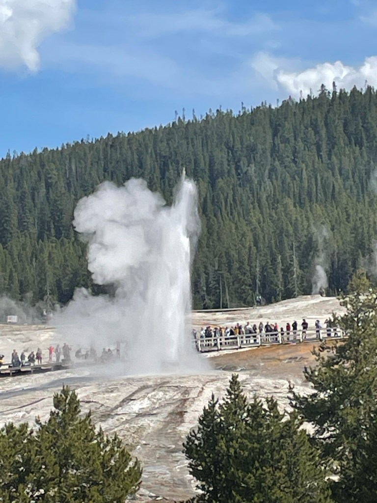 We ran into significant construction traffic, and didn’t arrive at Old Faithful until 10:10am, just in time to sprint across the parking lot and see the 10:30am geyser, right on time.