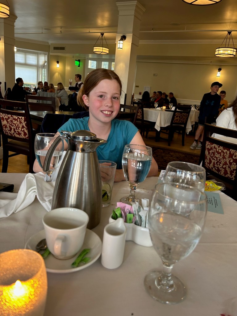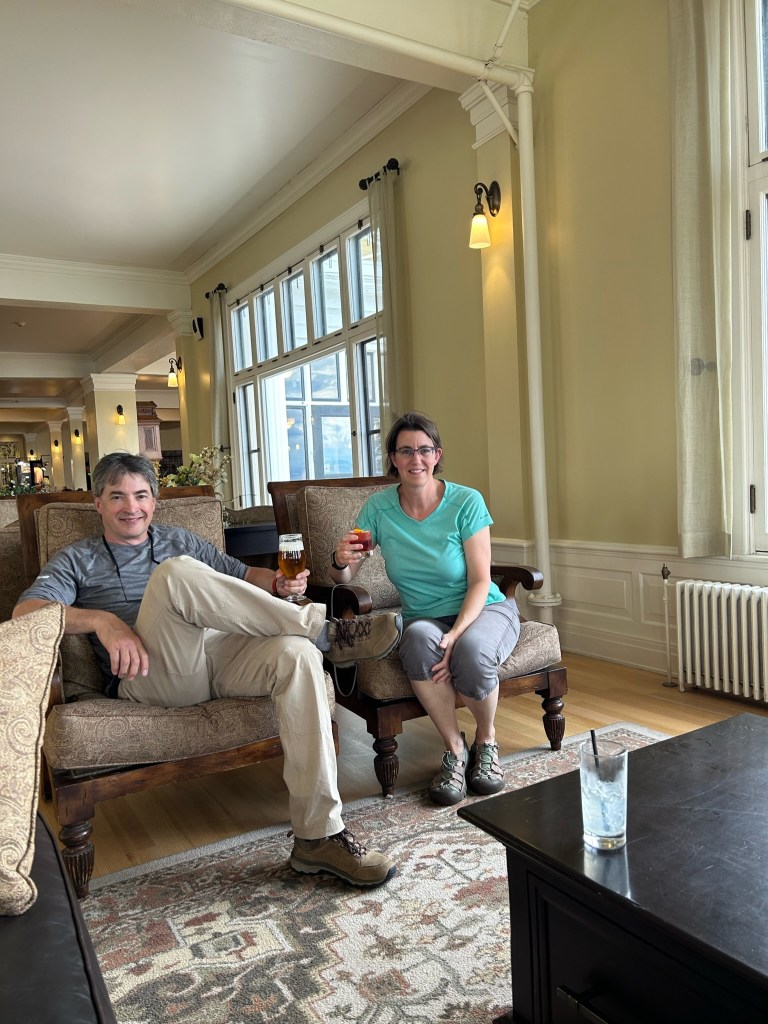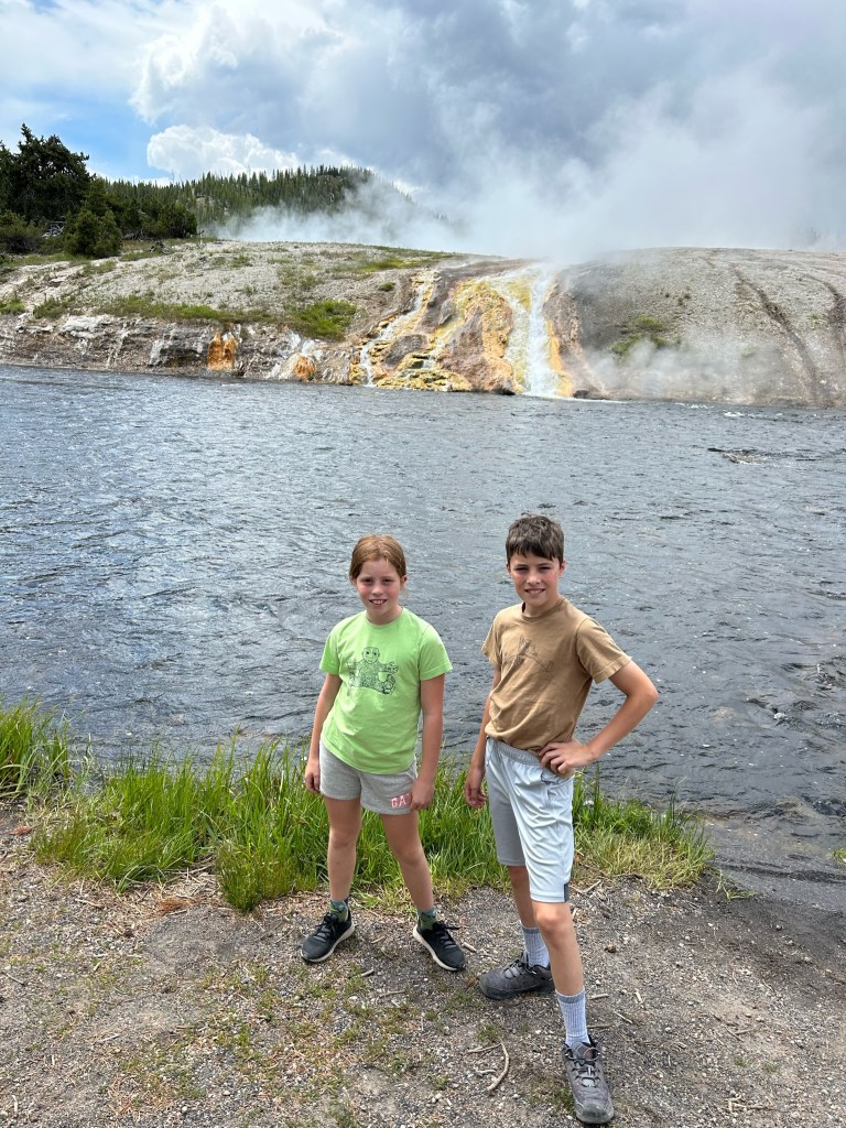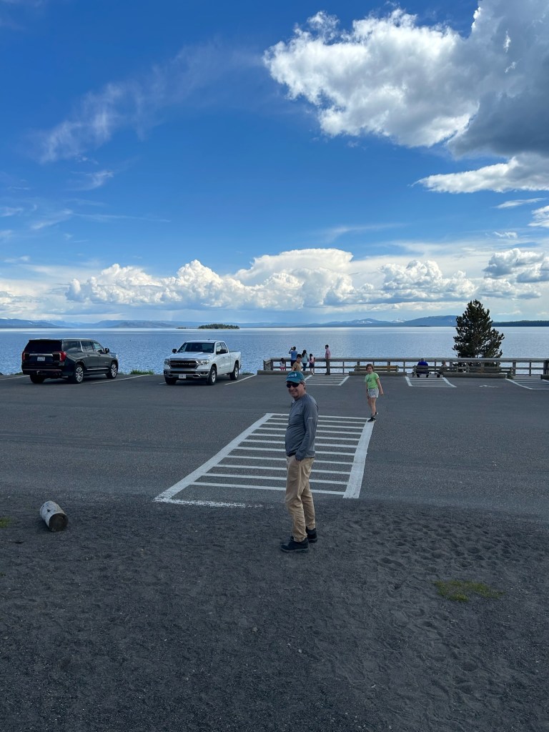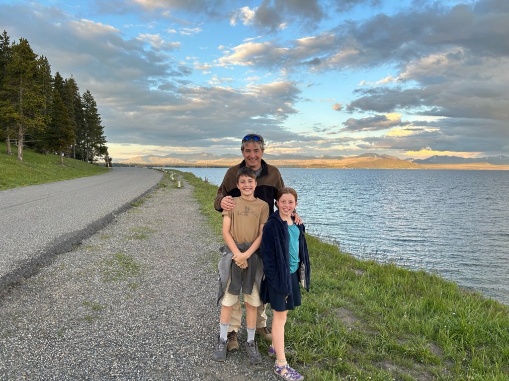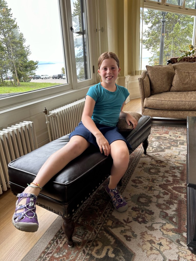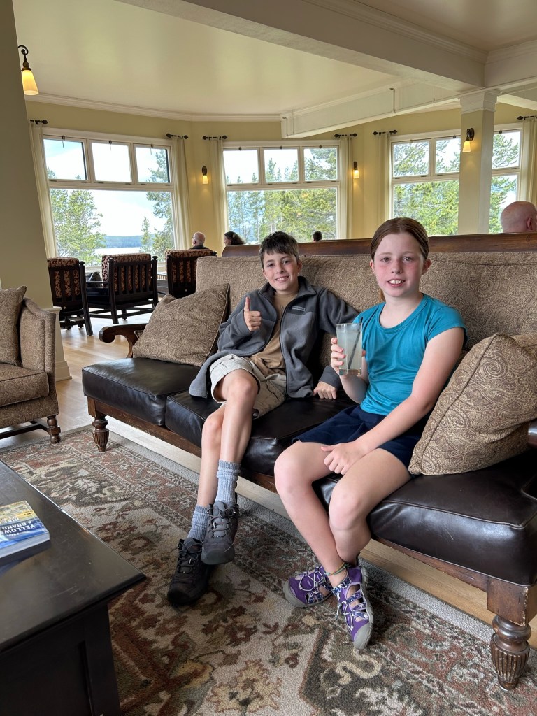 We arrived at the Yellowstone Lake Hotel just after 4pm, checked into our cabin, and had time to hit the general store before dinner. We had a cocktail overlooking the beautiful lake, listening to the string quartet playing Come on Eileen! An amazing dinner followed, complete with rabbit confit and elk sausage for Brady and local trout for Laura. We were all happy to snuggle into real beds for the night.