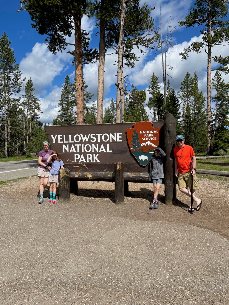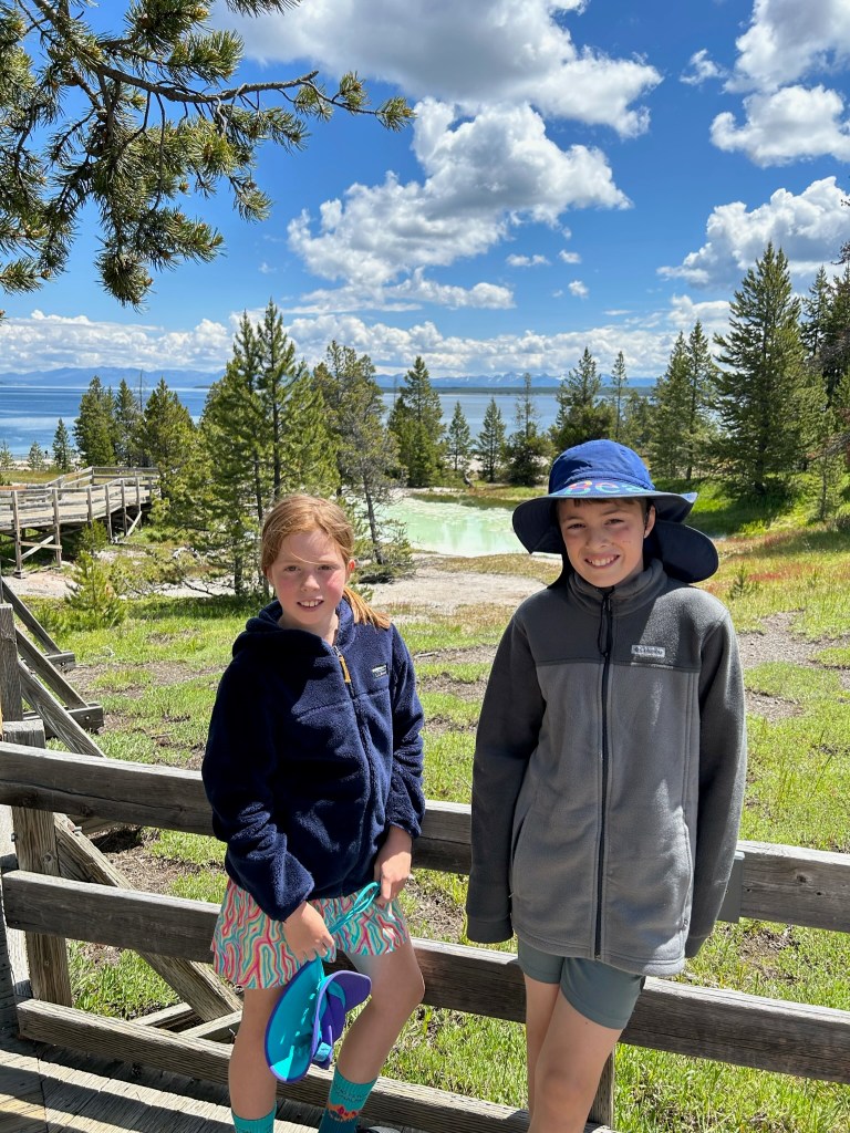 We arrived at the Yellowstone Lake Hotel just after 4pm, checked into our cabin, and had time to hit the general store before dinner. We had a cocktail overlooking the beautiful lake, listening to the string quartet playing Come on Eileen! An amazing dinner followed, complete with rabbit confit and elk sausage for Brady and local trout for Laura. We were all happy to snuggle into real beds for the night.