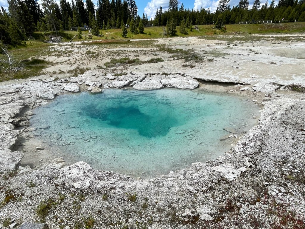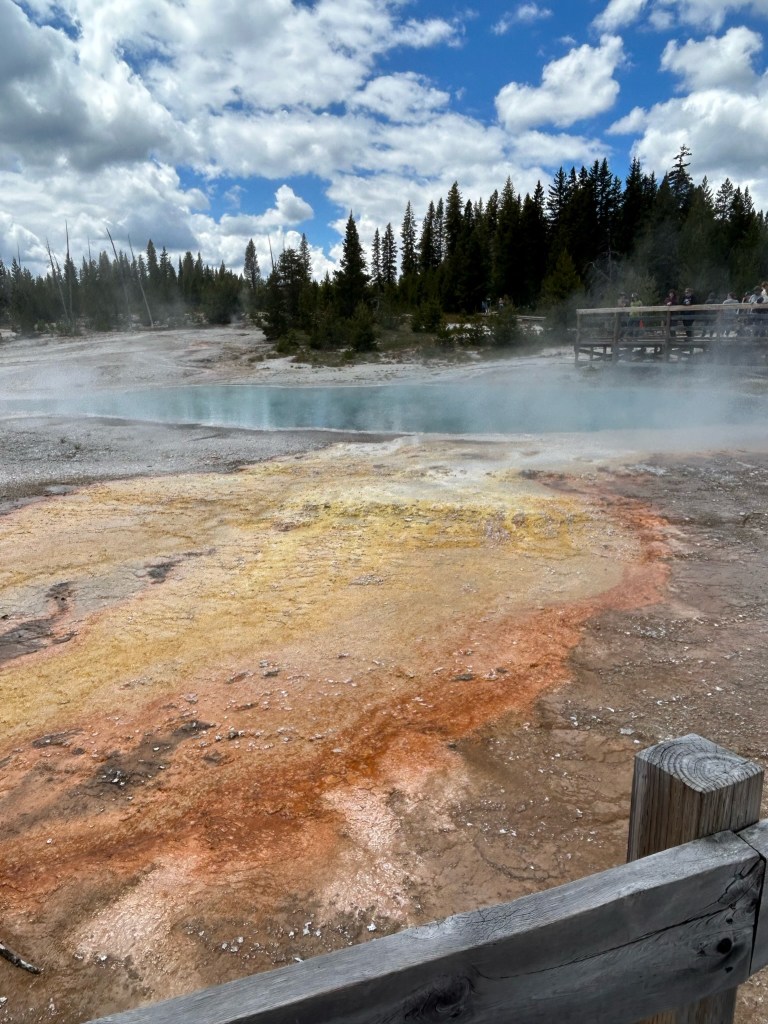 After hiking down, we drove another mile and got to walk right up to the hot springs we had viewed from above. The colors were amazing. In addition to the Grand Prismatic Spring, we also saw Opal and Tourmaline pools.