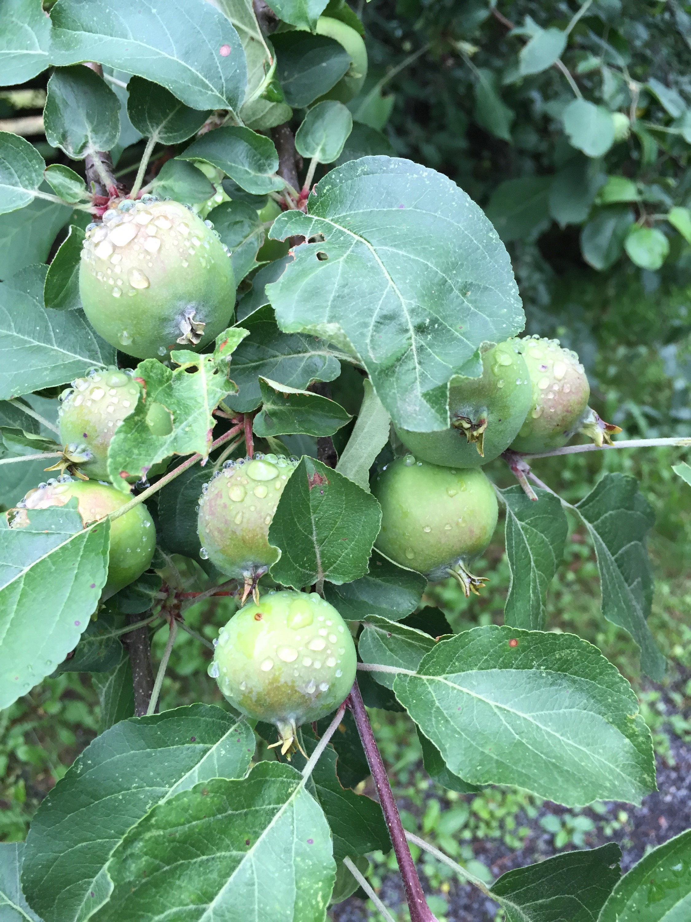 I have 22 productive apple trees on my property. Most of them are definitely bearing fruit this year, sticking with the pattern of great crops every other year. Figure on us having a big cider making party around October when the majority of the fruit is ripe enough. Here’s a good sample of what’s to come: