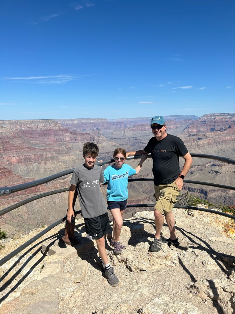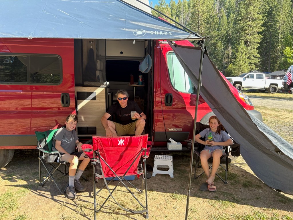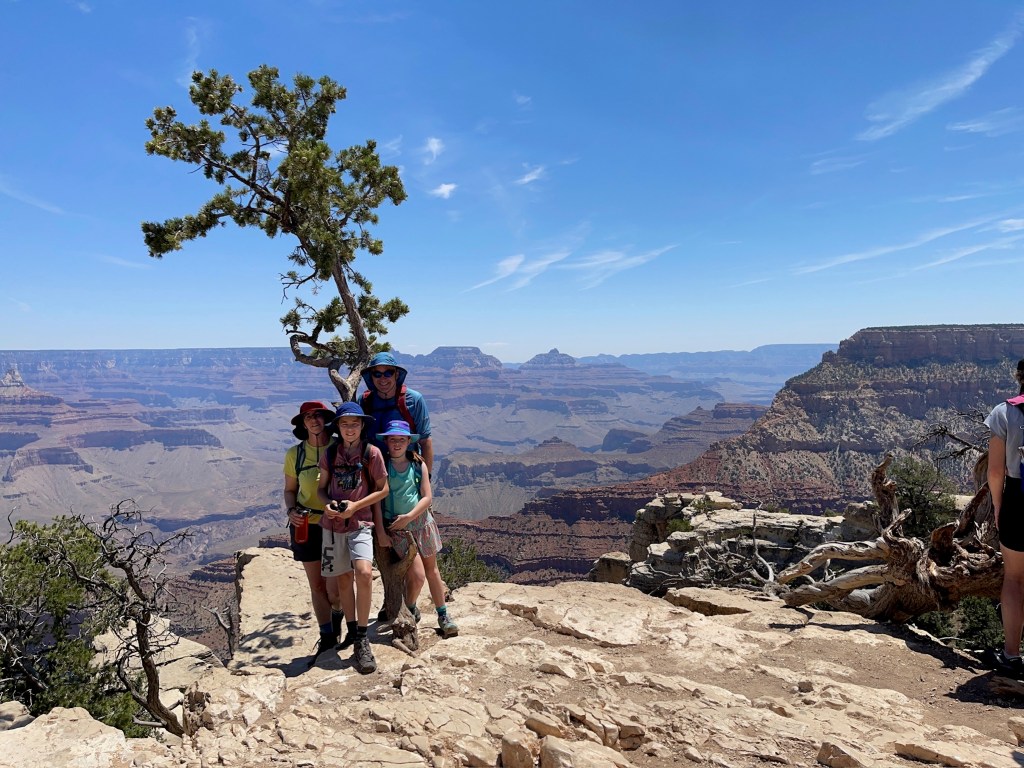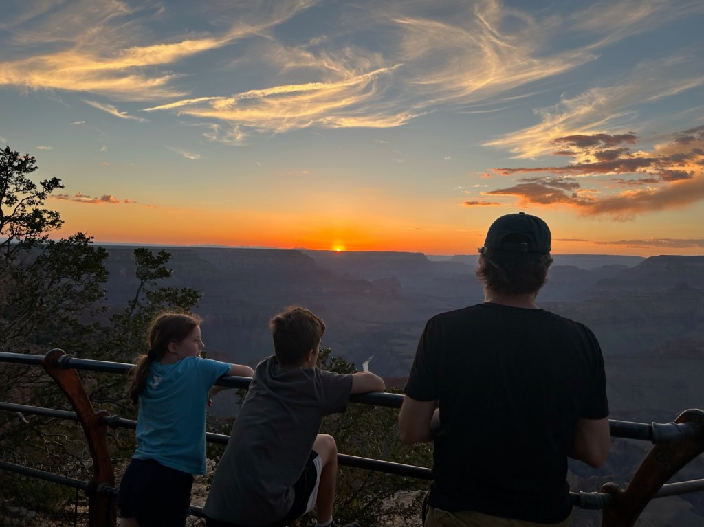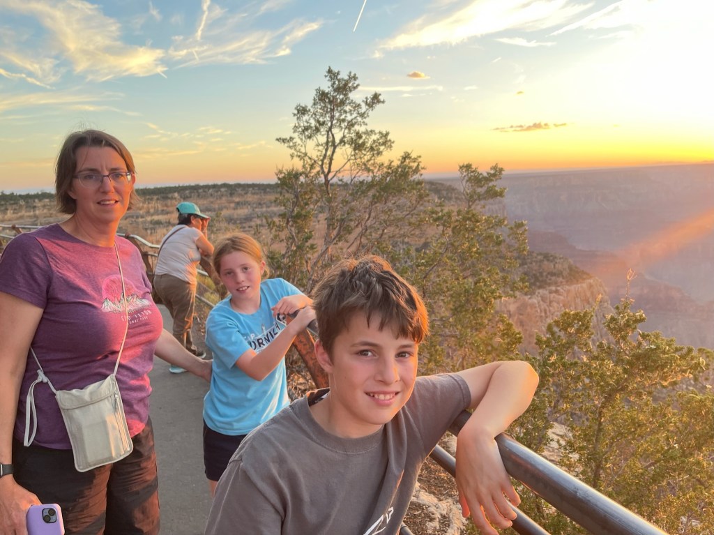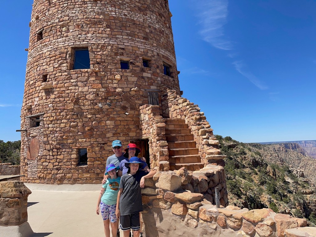 Our last stop of the day on our way back to the campsite was Park Point, the highest elevation in the park at 8,572 feet and home to the historic fire lookout. Conveniently, it was also home to the only cell signal in the entire park, so we were able to send our happy 80th birthday video to Grandpa before the end of the day! We also sent the following picture as proof 🙂