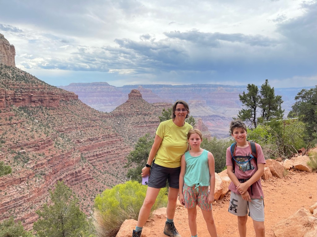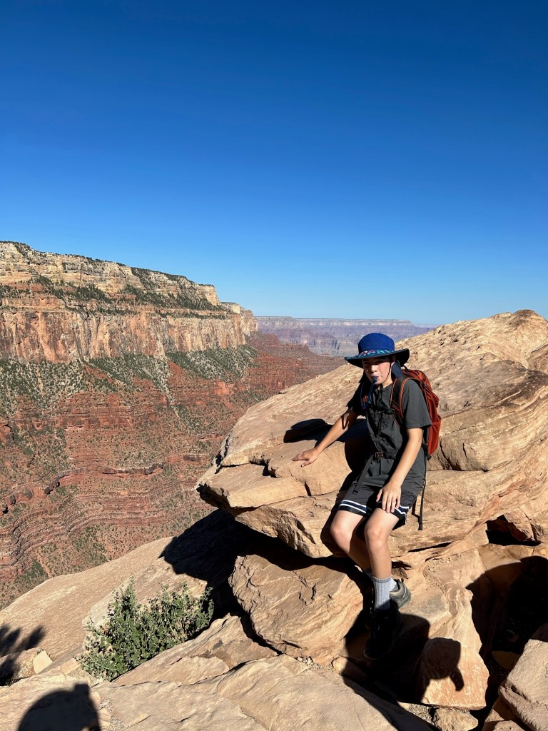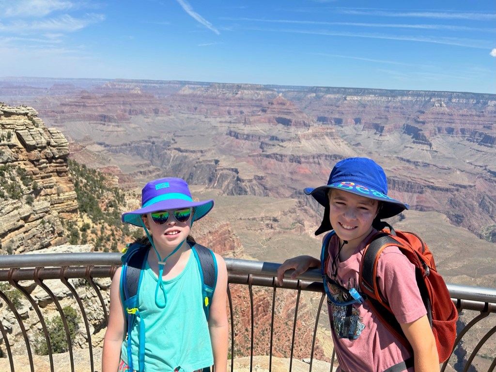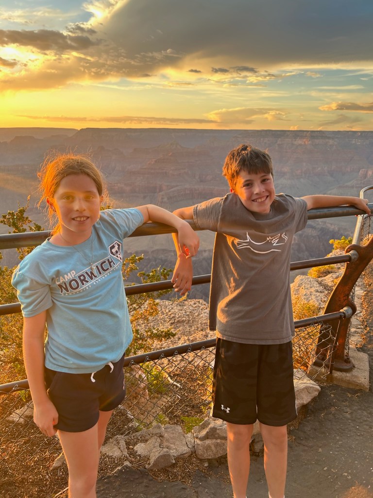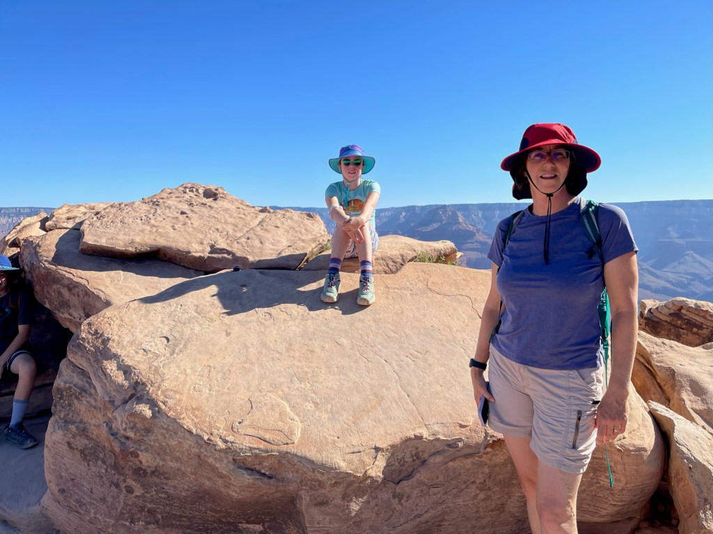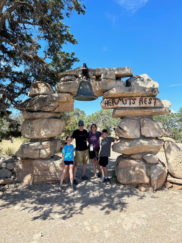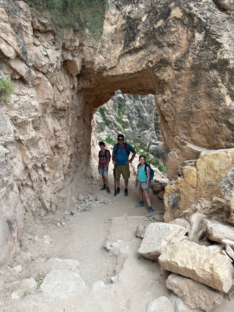 After eating lunch in the camper van, we hiked the Petroglyph Point trail, which we dubbed Swiss cheese mountain for all the holes and huge overhangs along the entire canyon wall. The hike started at Spruce Tree House Overlook, the third largest dwelling in the park. Our hike was narrated by the children and David imagining which little nooks and crannies would serve as bedrooms, living rooms, etc. when we moved into the cliff side. Right at the halfway point of the hike, we came across the petroglyphs for which the trail is actually named, the only authentic markings accessible to the public in the park. We had a great time clambering through all the alcoves, some optional, others part of a pretty advanced trail. There was an additional bonus archeological site along the route with foundations still visible.