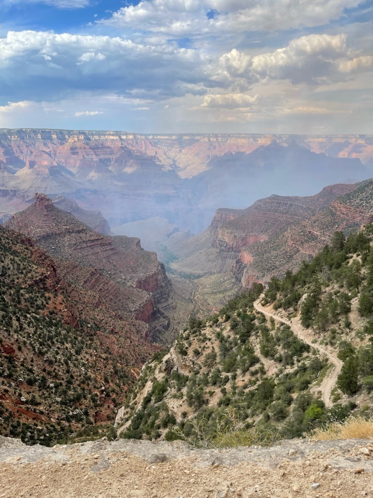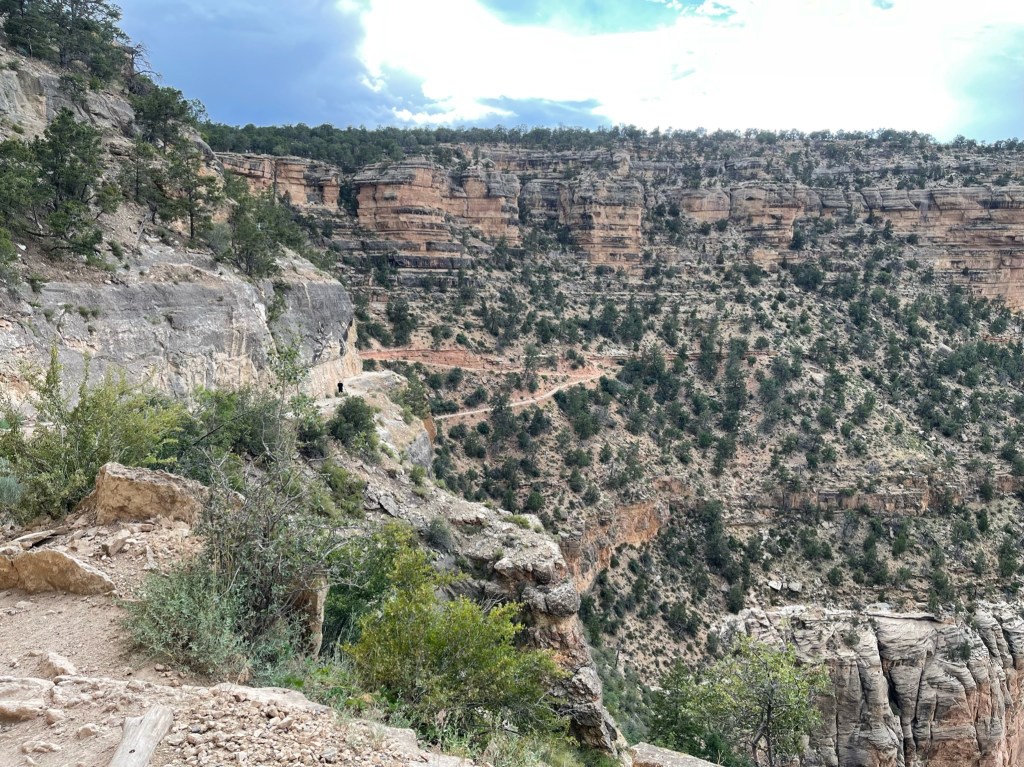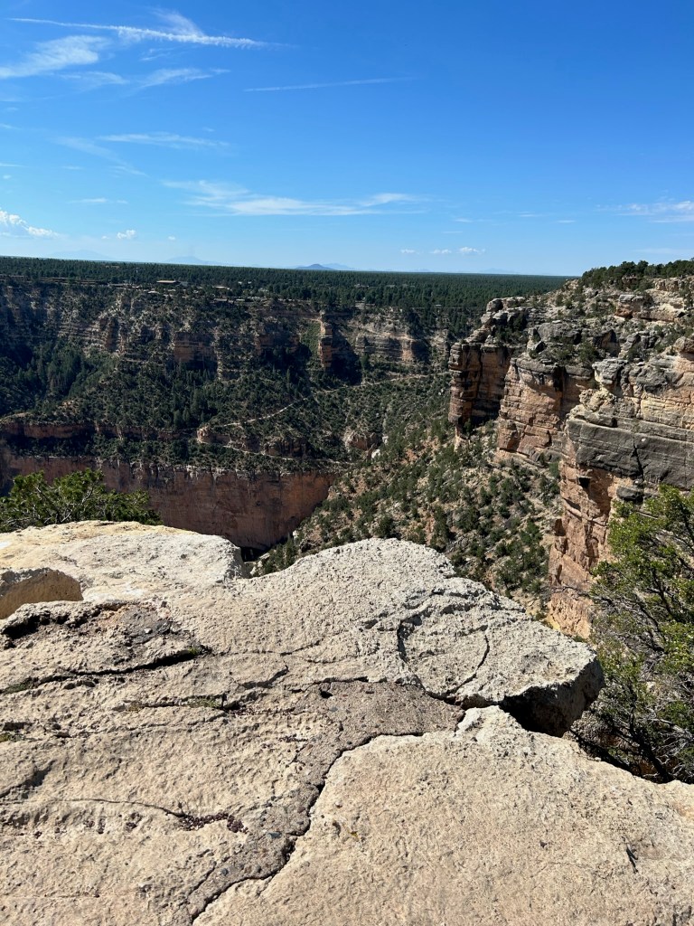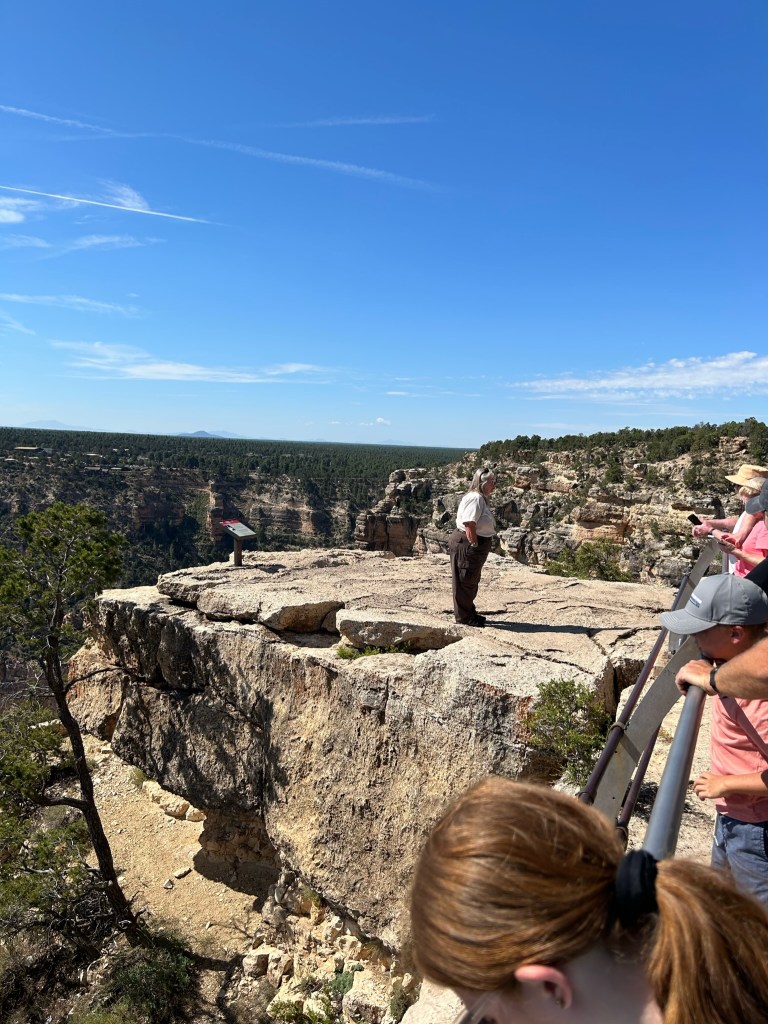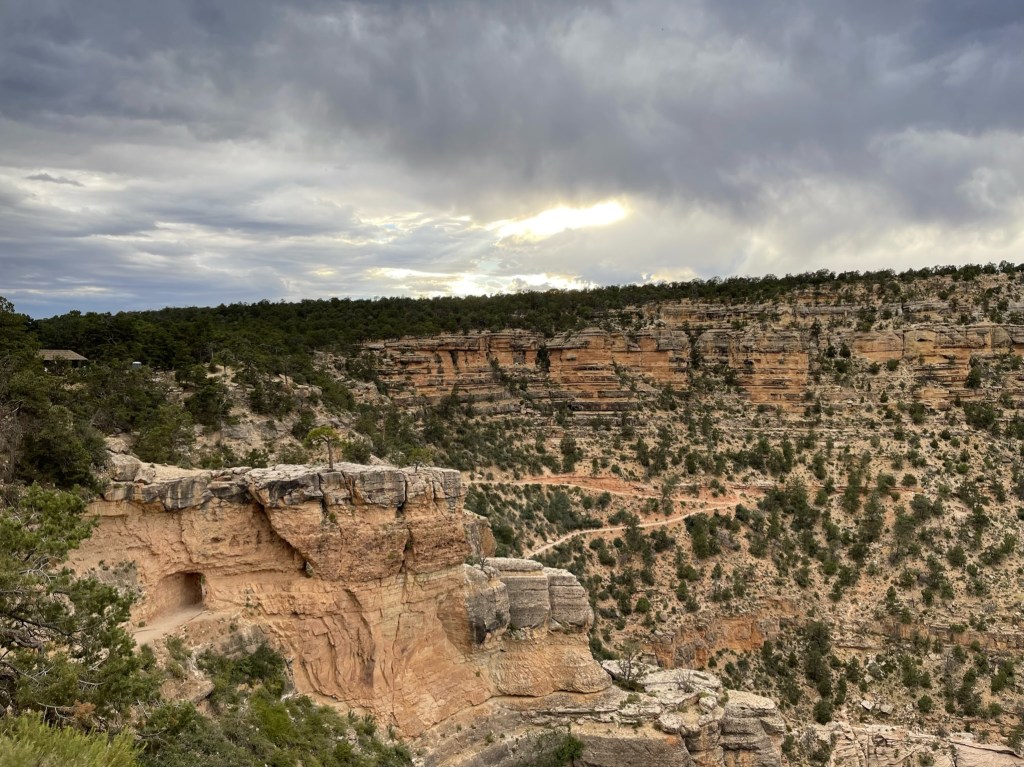We started the day with another spectacular mountain drive up onto the Mesa, complete with views down into Montezuma Valley. We did an amazing guided tour of Balcony House, an ancient cliff dwelling, with a Navajo native tour guide named Davin who was working as an intern in the park for the summer. The Navajo are one of the 26 tribes descended from the indigenous cliff dwellers of Mesa Verde and our guide made connections with his tribe’s rituals and culture and the cliff dwellers of the 13th century. We had to climb a 32-foot ladder and climb through a 18-inch-wide tunnel as part of the tour so it wasn’t for the feint of heart.