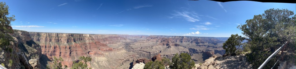 After we’d recovered from the 2-hour hike in the blazing sun, helped by cold refreshments, we returned to the van to take a self-guided audio car tour around the Mesa Top Loop. The stops on the tour traced the evidence of the increasingly complex dwellings designed by the indigenous inhabitants of the region. Each archeological site revealed the types of houses from 550 AD (pit houses) right up through 1300 AD (Sun Temple and Cliff Palace) when the last of the ancestral Puebloans migrated away from the area.